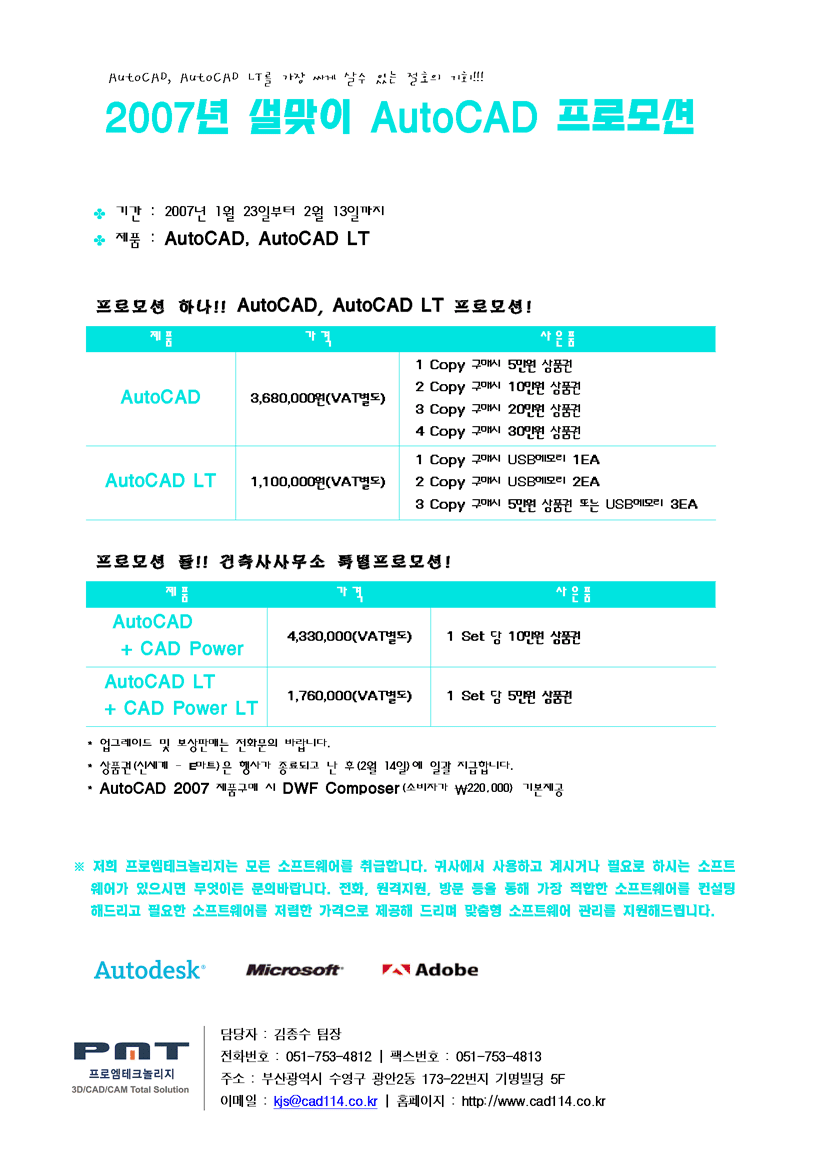¼³¸ÂÀÌ AutoCAD 2007 ÇÁ·Î¸ð¼Ç(Çà»çÁ¾·á)